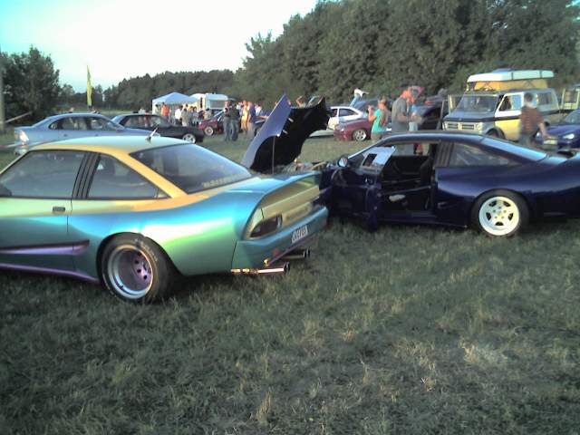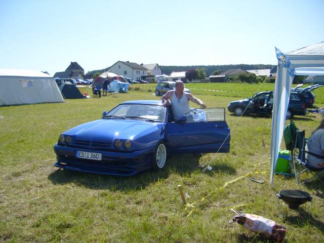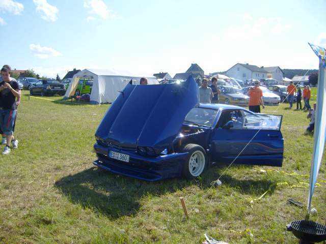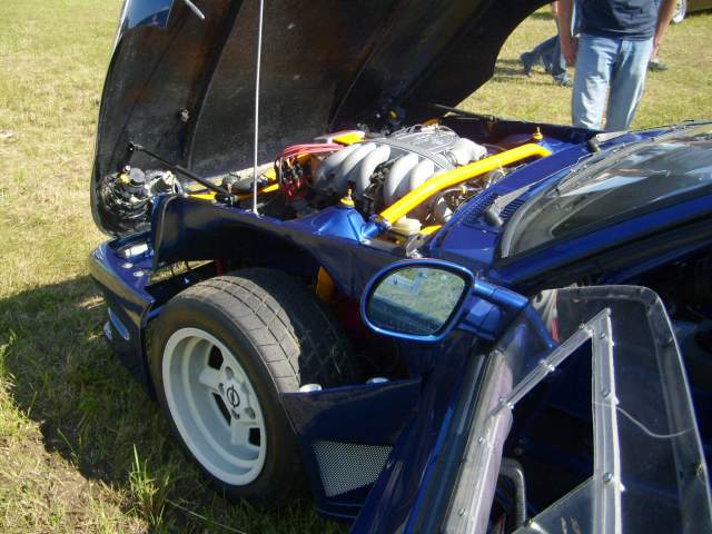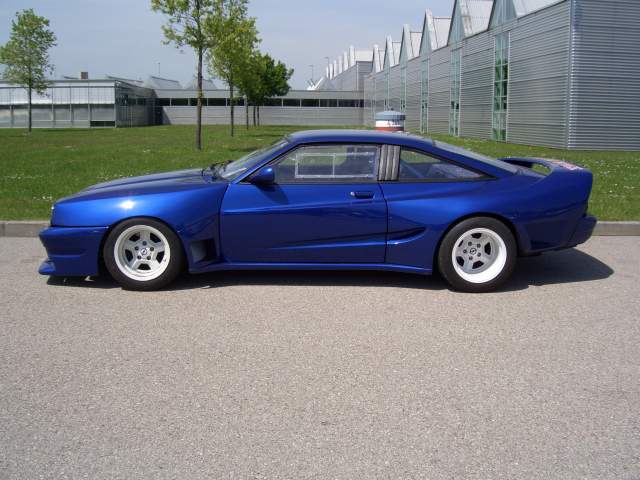 Motor 3,0 24V vom Omega EVO 500, Leistung 259 PS, umgebauter 79er Leichtbau Mattig-Extrem Breitbau (Leergewicht 1100 Kg), Top chop um 10 cm (Fahrzeughöhe 117 cm) mit eingeschweißter Stahlzelle, Macrolonscheiben, Eigenbau Motorhaube GFK mit schwarzen BMW Scheinwerfern, verstärkte Vorder- und Hinterachsen,